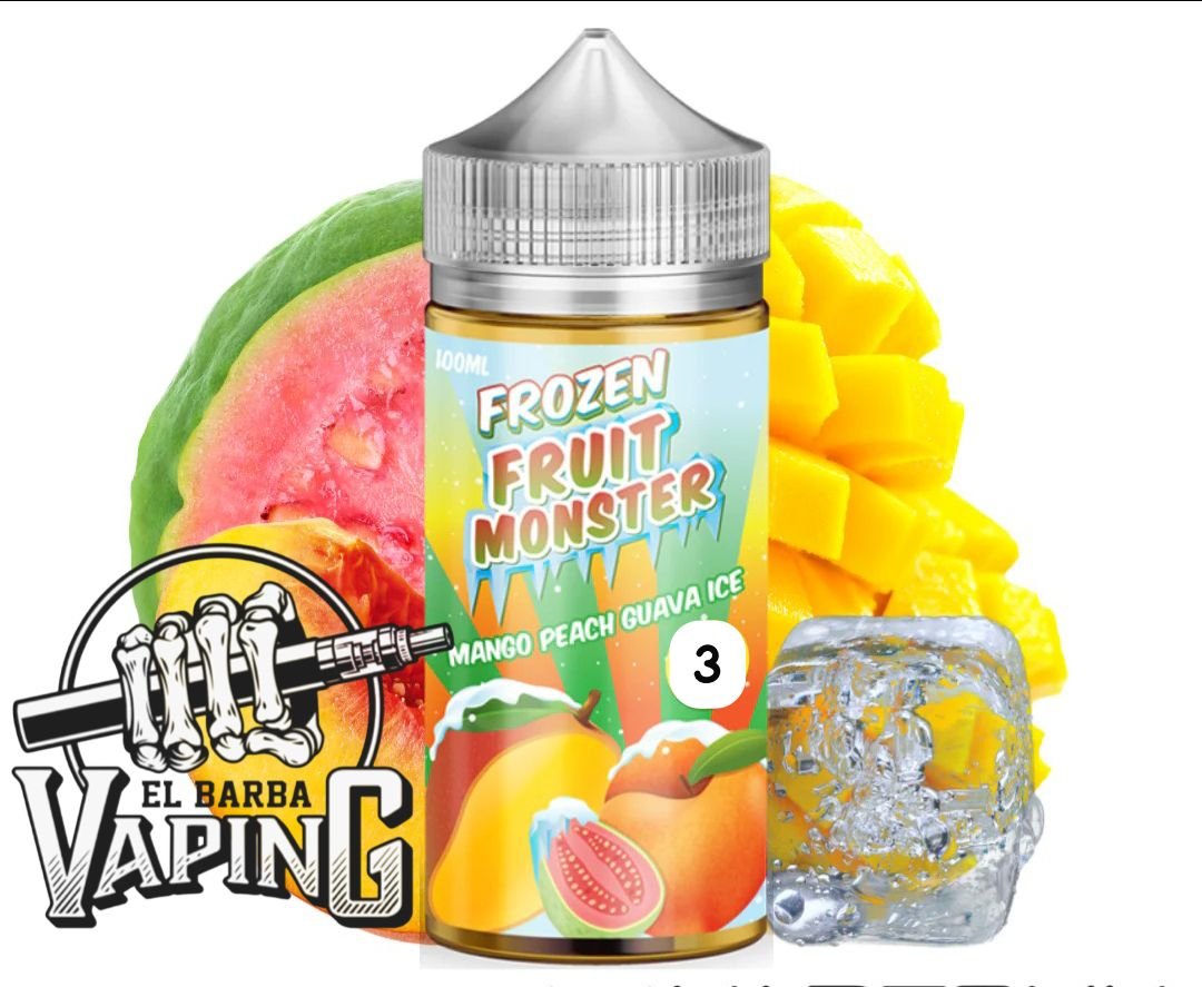 Monster Frozen Fruit Mango Peach Guava. Saborea la jugosidad del mango, la suavidad de los duraznos y la dulzura exquisita de la guayaba en cada bocanada. Esta mezcla equilibrada te lleva a un paraíso helado de frutas, donde los sabores se entrelazan en una sinfonía refrescante que despierta tus sentidos y te hace ansiar cada inhalación.